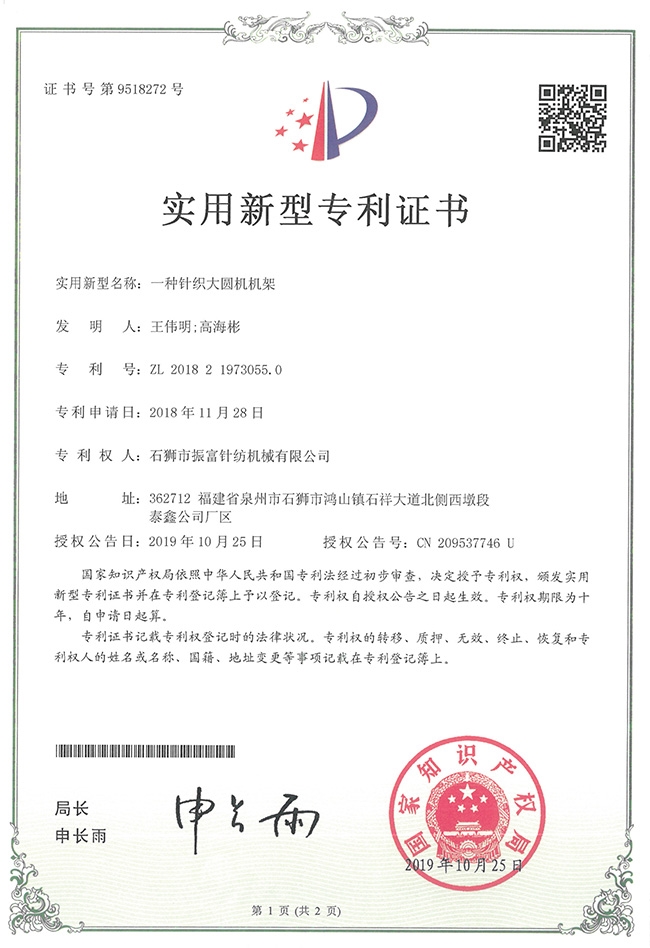 石獅市振富針紡機(jī)械有限公司成立于2003年11月03日,專業(yè)從事緯編針織大圓機(jī)設(shè)計(jì)及制造的研發(fā)型公司,企業(yè)具備雄厚的產(chǎn)品研發(fā)和制造能力。自有廠房并配備了研發(fā)專用實(shí)驗(yàn)室,每年研發(fā)投入數(shù)百萬元,現(xiàn)有發(fā)明專利兩項(xiàng),實(shí)用新型專利總計(jì)七十余項(xiàng),真正實(shí)現(xiàn)研發(fā)與生產(chǎn)相結(jié)合,將技術(shù)成果轉(zhuǎn)換并應(yīng)用到實(shí)踐中來;獲得“國(guó)家高新技術(shù)企業(yè)”、“科技小巨人領(lǐng)軍企業(yè)”、“省科技型中小企業(yè)”,“金牌設(shè)備供應(yīng)商”等殊榮。