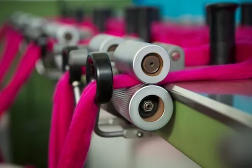 半精紡可實現(xiàn)棉、毛、絲、麻等天然原料與其它新型人造纖維、化學(xué)纖維的成功混紡。毛紡半精紡的原料涵蓋了從山羊絨、羊毛、絹絲、兔絨、棉、苧麻等天然纖維,大豆蛋白纖維、牛奶蛋白纖維、天絲、莫代爾、竹纖維、粘膠纖維等人造纖維以及腈綸、滌綸、錦綸等化學(xué)纖維的成功混紡,產(chǎn)品結(jié)構(gòu)異常豐富。